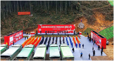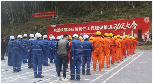 2018年12月21日,杭溫鐵路控制性工程建設推進動員大會在杭溫鐵路永嘉段西山隧道施工現場勝利舉行,政府相關部門、建設單位、勘察設計單位及施工單位參加了此次動員大會。浙江省發改委、溫州市政府、上海鐵路局、上海鐵路監管局的領導出席并發表重要講話;建設單位百盛聯合杭溫鐵路有限公司與施工單位中鐵十一局代表作表態發言。動員大會現場,各有關部門的相關干部及項目建設者們精神抖擻,隨著工程車齊鳴,吹響了杭溫鐵路新階段的建設號角。