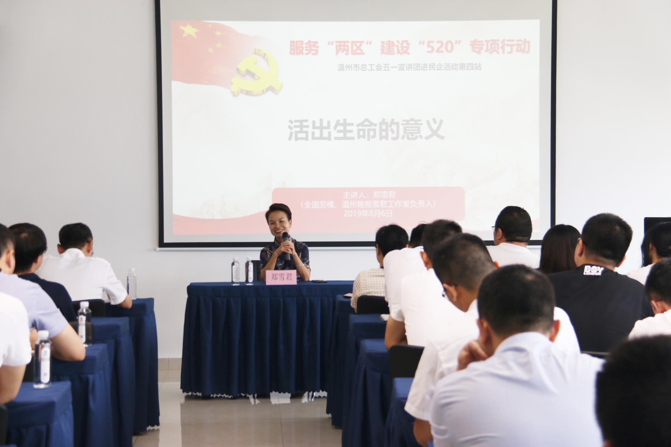 8月6日,百盛中午學堂迎來特殊一課,“服務‘兩區’建設‘520’專項行動”溫州市總工會五一宣講團活動走進百盛聯合集團有限公司?;顒友埖搅巳珖鴦谀?、溫州晚報雪君工作室負責人鄭雪君前來授課。