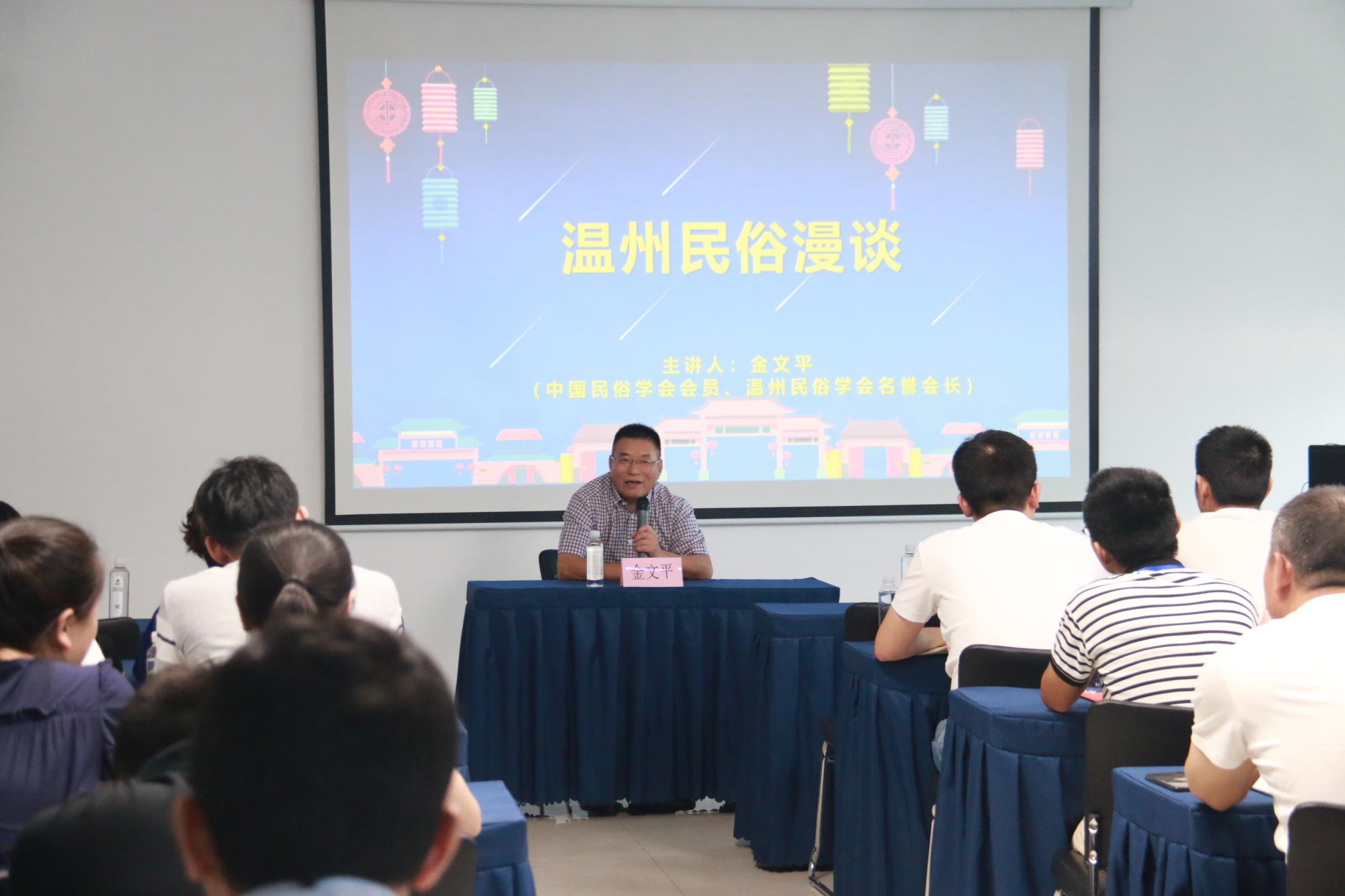 9月11日中午,百盛中午學堂如期舉行,此次講座邀請到了中國民俗學會會員、溫州市民俗學會名譽會長金文平做主題為“溫州民俗漫談”的講座。金文平老師由春節、元宵、清明等“四季八節”展開闡述,講述了溫州節日特色民俗形成的過程,讓外地員工深入了解了溫州文化,也勾起了在座溫州員工的懷舊情結。