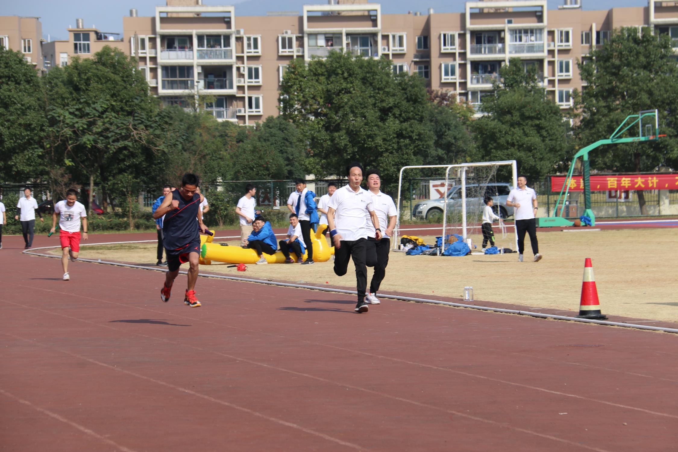 本屆運(yùn)動會集競爭性、協(xié)作性、趣味性于一體,設(shè)男女4×100米接力、800米跑、拔河、三對三籃球等4項(xiàng)競技類比賽項(xiàng)目和旱地龍舟、五人六足、集體跳繩等3項(xiàng)趣味類比賽項(xiàng)目。賽場上隊(duì)員奮勇拼搏、你追我趕,激情的汗水揮灑在賽場,場下觀眾不時(shí)發(fā)出陣陣歡呼聲。