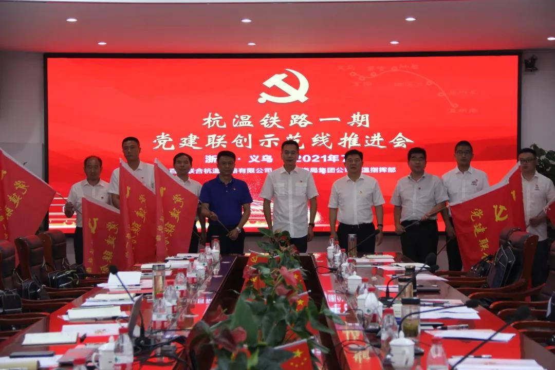 為切實發揮黨組織的示范引領和黨員的先鋒模范作用,進一步強化對黨建聯創示范線創建工作的考核管理,壓實工作責任,明確工作目標,杭溫鐵路各參建單位負責人向杭溫公司、杭溫工程建設指揮部遞交了《杭溫鐵路一期黨建聯創示范線目標責任書》,并由杭溫公司和杭溫工程建設指揮部共同為各參建單位授予了“黨建聯創先鋒隊”旗幟,杭溫鐵路各參建單位在會上也作了表態發言,表明了對于創建黨建聯創示范線以及進一步加快推進杭溫鐵路項目建設的信心和決心。