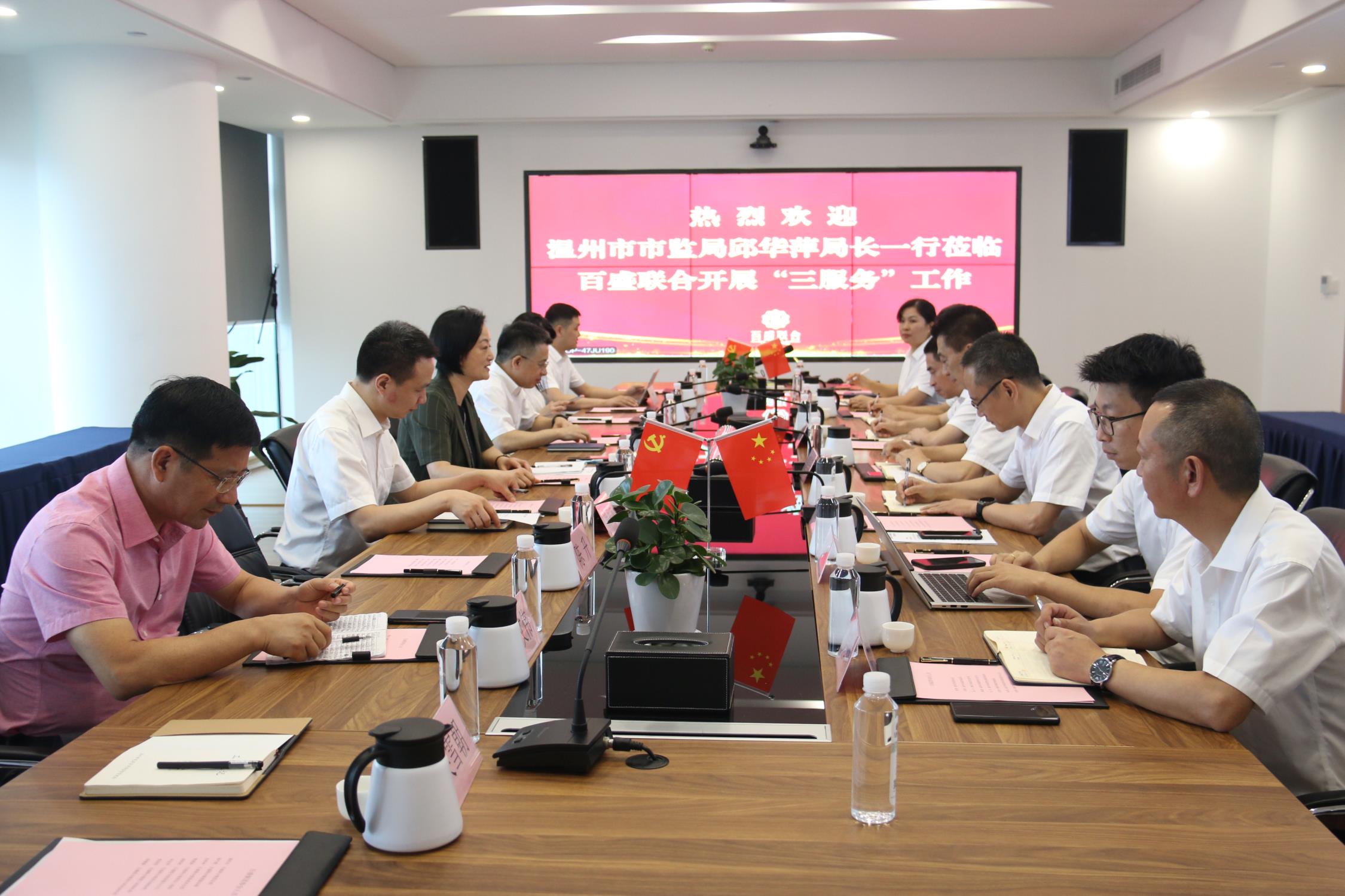 8月4日上午,溫州市市場(chǎng)監(jiān)管局黨委書記、局長(zhǎng)邱華萍一行到百盛聯(lián)合集團(tuán)有限公司開展質(zhì)量工作“三服務(wù)”活動(dòng),溫州市市場(chǎng)監(jiān)管局辦公室、質(zhì)量發(fā)展處處室負(fù)責(zé)人,龍灣區(qū)市場(chǎng)監(jiān)管局主要領(lǐng)導(dǎo)、相關(guān)科室負(fù)責(zé)人和特邀質(zhì)量管理專家陪同調(diào)研。集團(tuán)總裁盛星樂熱情接待并舉行座談。