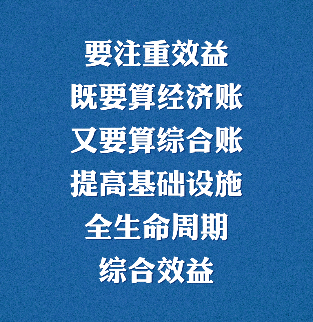 要科學規劃,貫徹新發展理念,立足全生命周期,統籌各類基礎設施布局,實現互聯互通、共建共享、協調聯動。