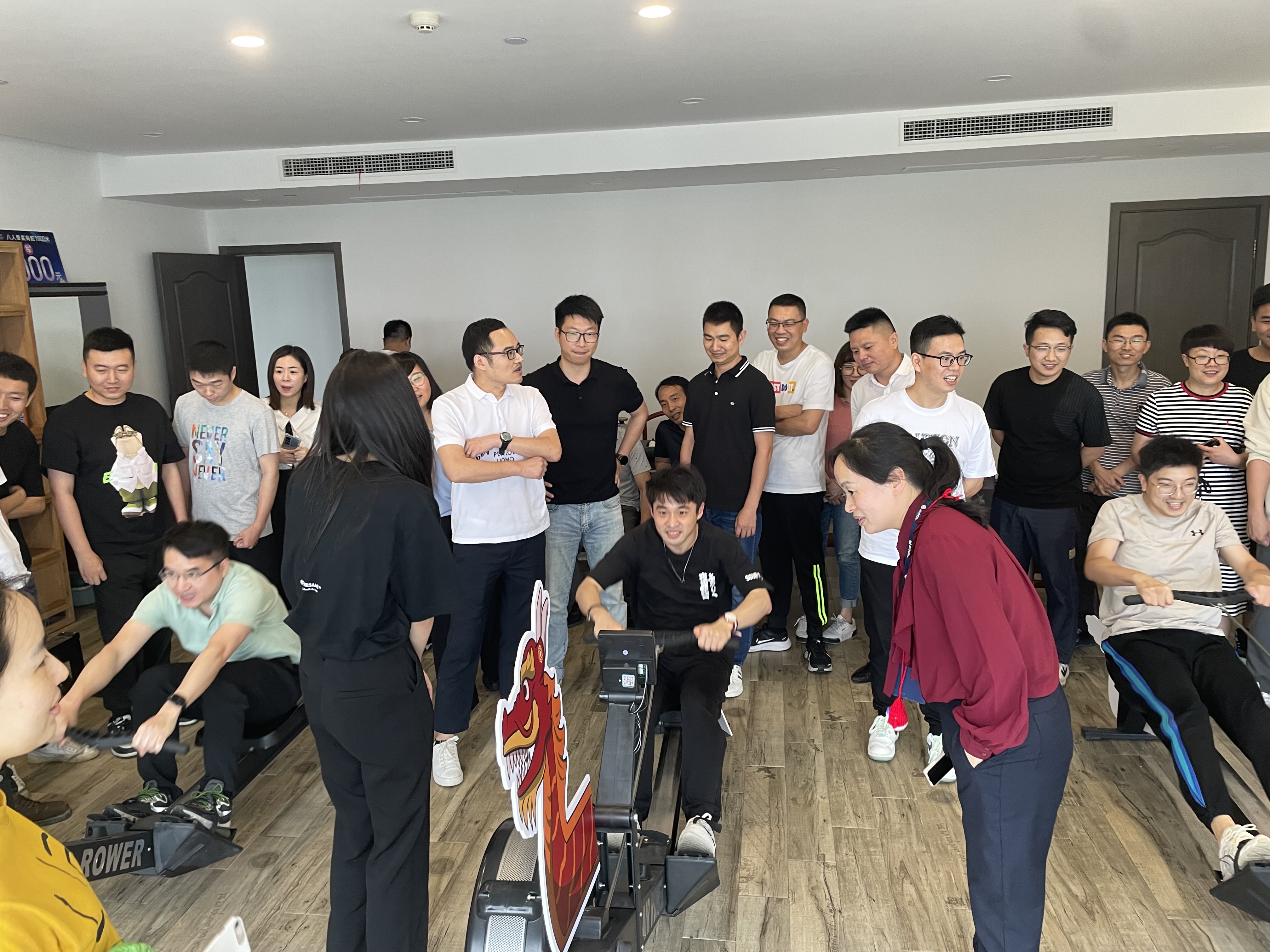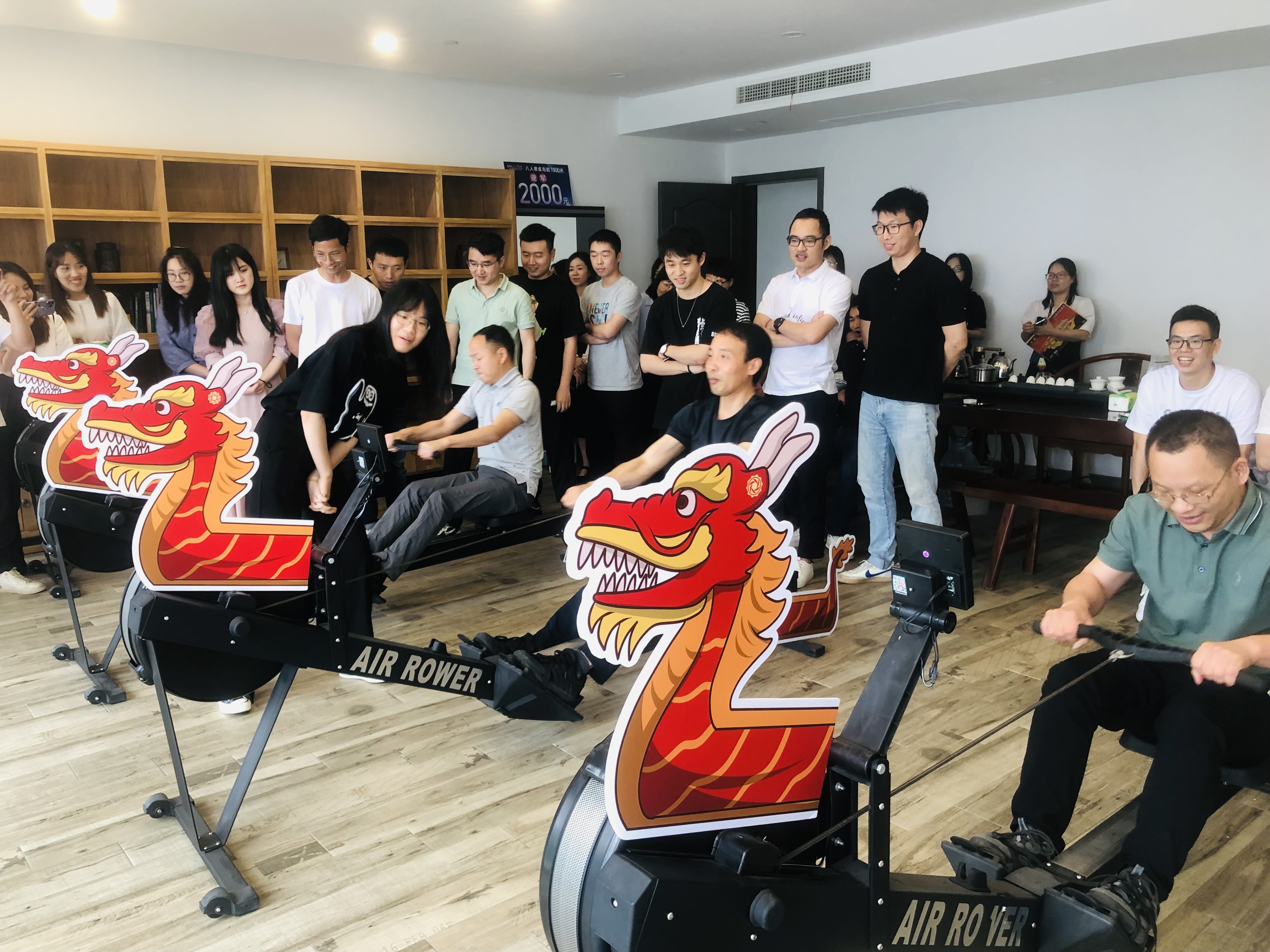 龍舟競(jìng)渡,躍浪爭(zhēng)先,在劃船機(jī)上模擬劃龍舟活動(dòng),縱享劃船之感!派出的選手們接力劃龍舟,每人劃250米,比出用時(shí)最短的隊(duì)伍。選手們奮力“劃槳”,使得現(xiàn)場(chǎng)的氣氛達(dá)到最高潮。最終,由人力資源部和法律合規(guī)部聯(lián)合起來(lái)的隊(duì)伍以6分21秒的成績(jī)贏得所有選手。