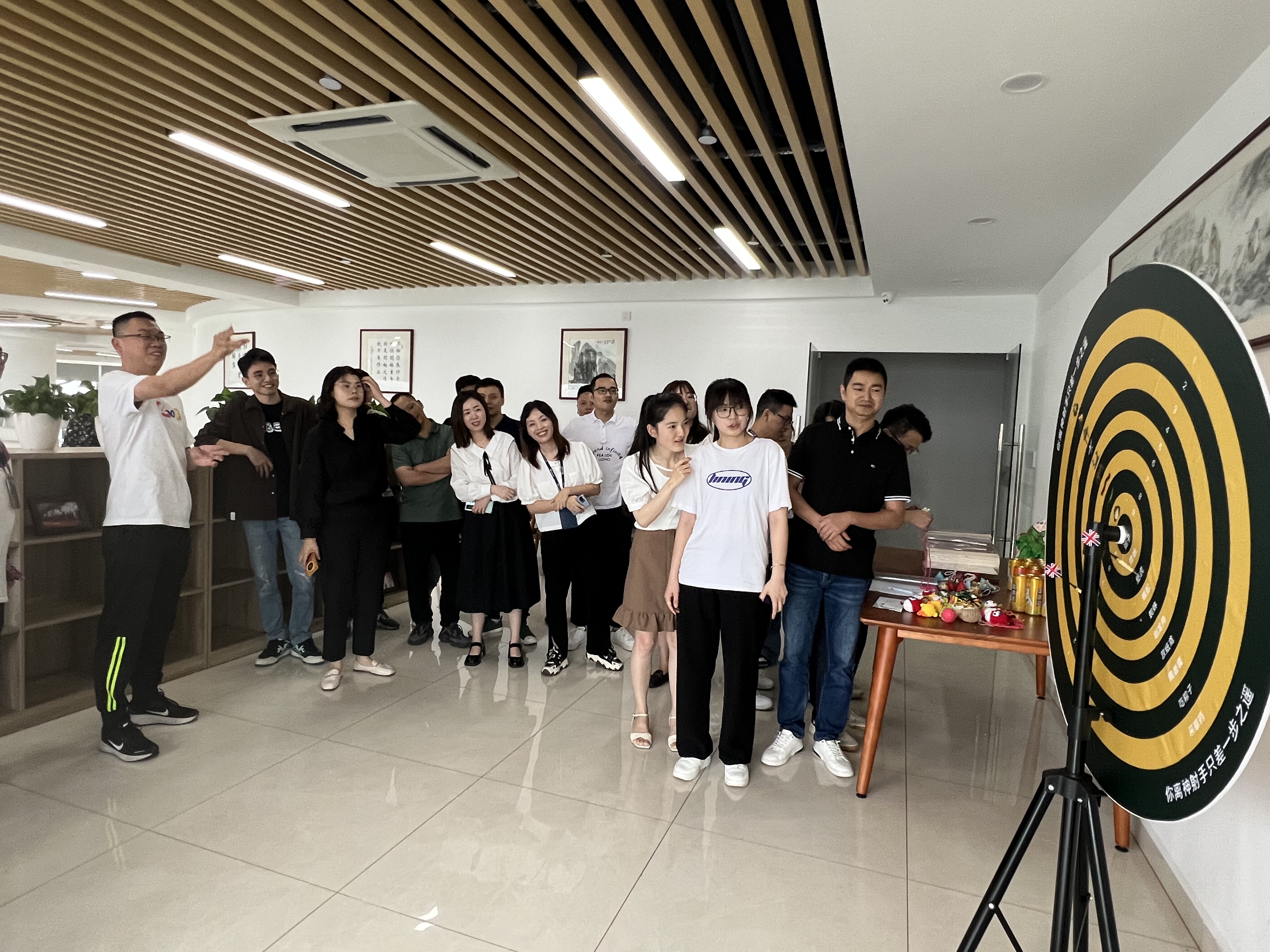 現(xiàn)場(chǎng)最具歡樂(lè)性的活動(dòng)當(dāng)屬以下這兩個(gè)了。結(jié)合端午“射五毒”習(xí)俗,現(xiàn)場(chǎng)活動(dòng)布置了一個(gè)大轉(zhuǎn)盤(pán),讓員工們用飛鏢去射中“五毒”(蜈蚣、毒蛇、蝎子、壁虎和蟾蜍),驅(qū)邪避災(zāi),贏獎(jiǎng)品。大家紛紛展示自己的“神箭手”技術(shù),贏得現(xiàn)場(chǎng)一片喝彩。