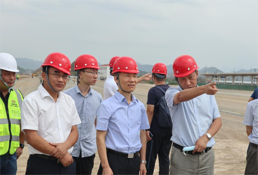 考察團一行先后實地察看了義烏站、義烏特大橋、橫店特大橋、九塢隧道、磐安站、小嶺隧道、西山隧道無砟軌道等施工現場的建設情況,詳細聽取了相關負責人對項目建設情況的介紹。