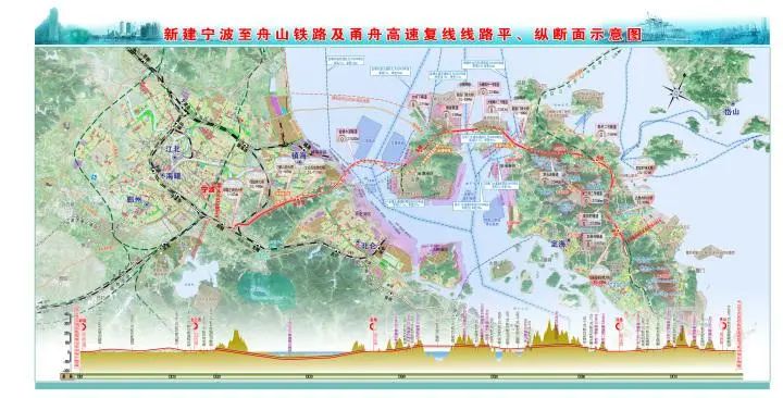 甬舟鐵路西起寧波東站,經寧波市鄞州區、北侖區,舟山市金塘島、冊子島及舟山本島,東至舟山市定海區白泉鎮。整個項目全長77公里、設計時速250公里,雖不足百公里卻將誕生“一隧”“一橋”兩項世界之最。
