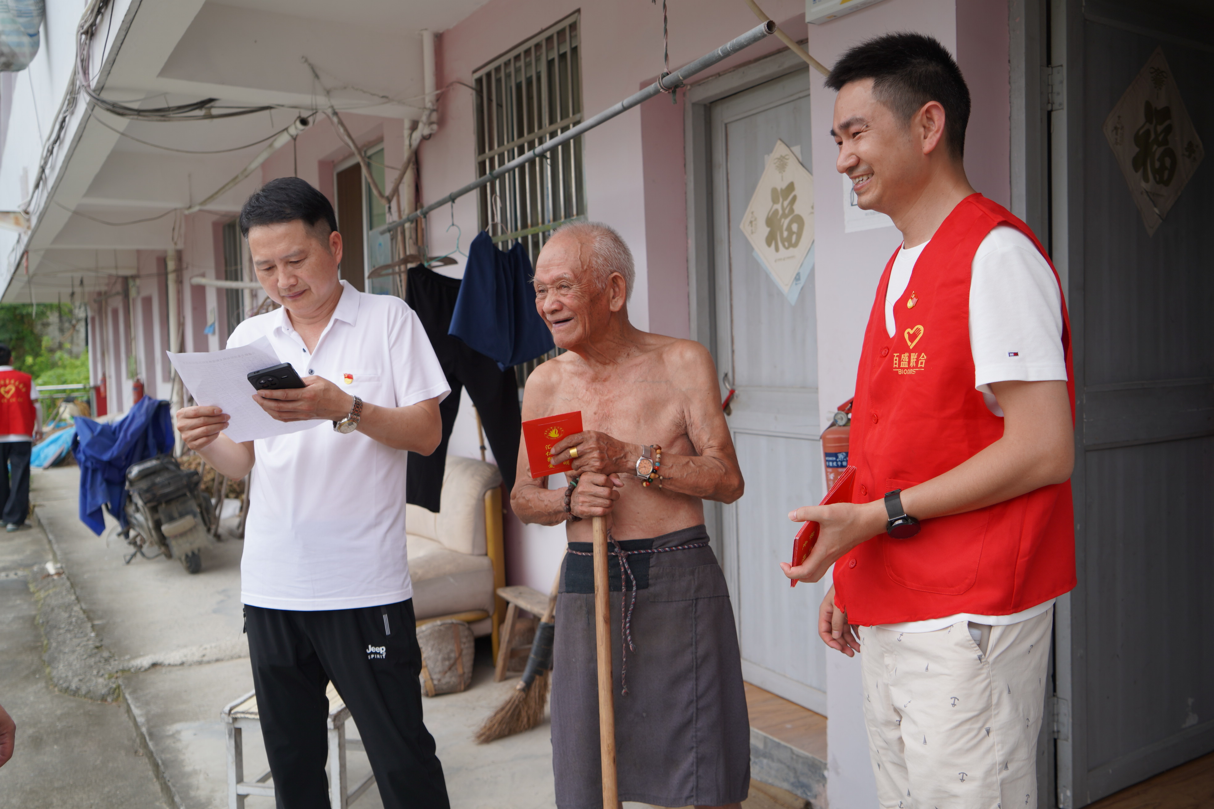在林里村周轉房,志愿者們與村委會干部一道上門看望困難老黨員、獨居老人、困難家庭學生,關切詢問他們的生活和健康情況,送上了慰問金和生活物資。看到來自社會的關懷,幸福感洋溢在每一位臉上。