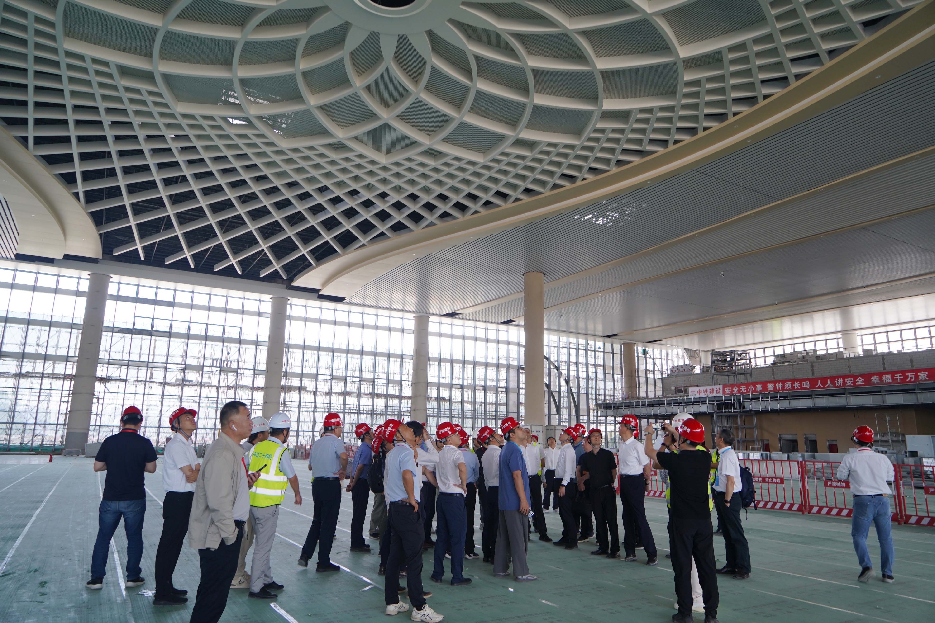 在橫店站,應慧剛一行查看了站臺、候車大廳、進站廣廳、落客平臺以及地下城市通廊等重點區域,聽取了百盛聯合集團工作人員對于站房建設情況的詳細介紹,對橫店站房的建設和文化融入等方面給予肯定。