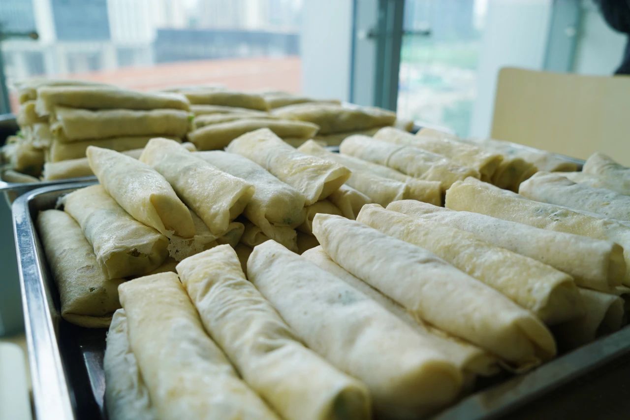 我們以一張張薄餅拉開了活動的序幕。大家齊聚一堂,親手包著皮薄餡足,口感豐富的薄餅。包入的是甜蜜,傳遞的是溫情。