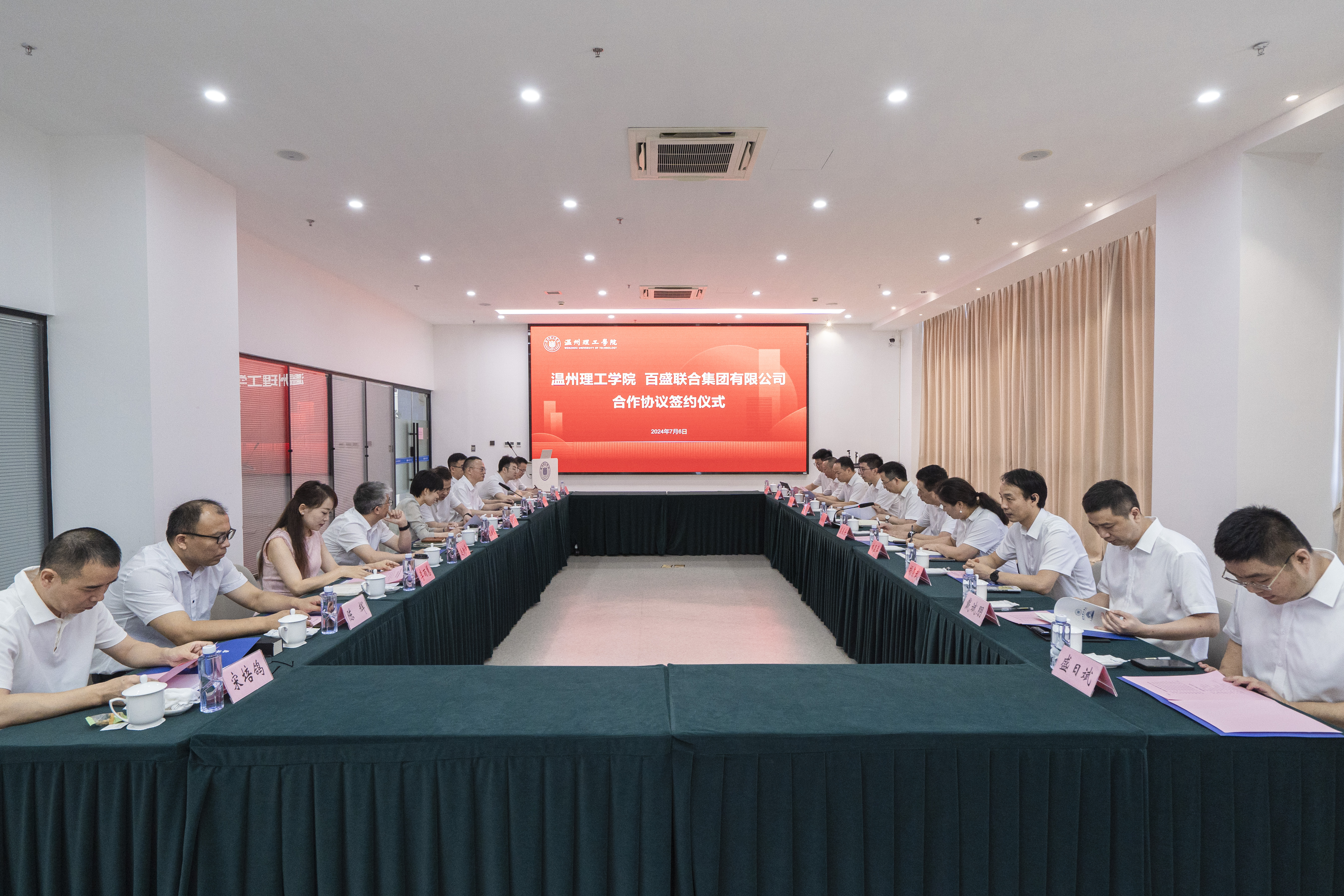 7月6日,百盛聯合集團與溫州理工學院在溫州理工學院濱海校區舉行戰略合作協議簽訂儀式。集團高層與溫州理工學院黨委書記陳永光、副校長鄭華等校方領導共同出席簽約儀式。