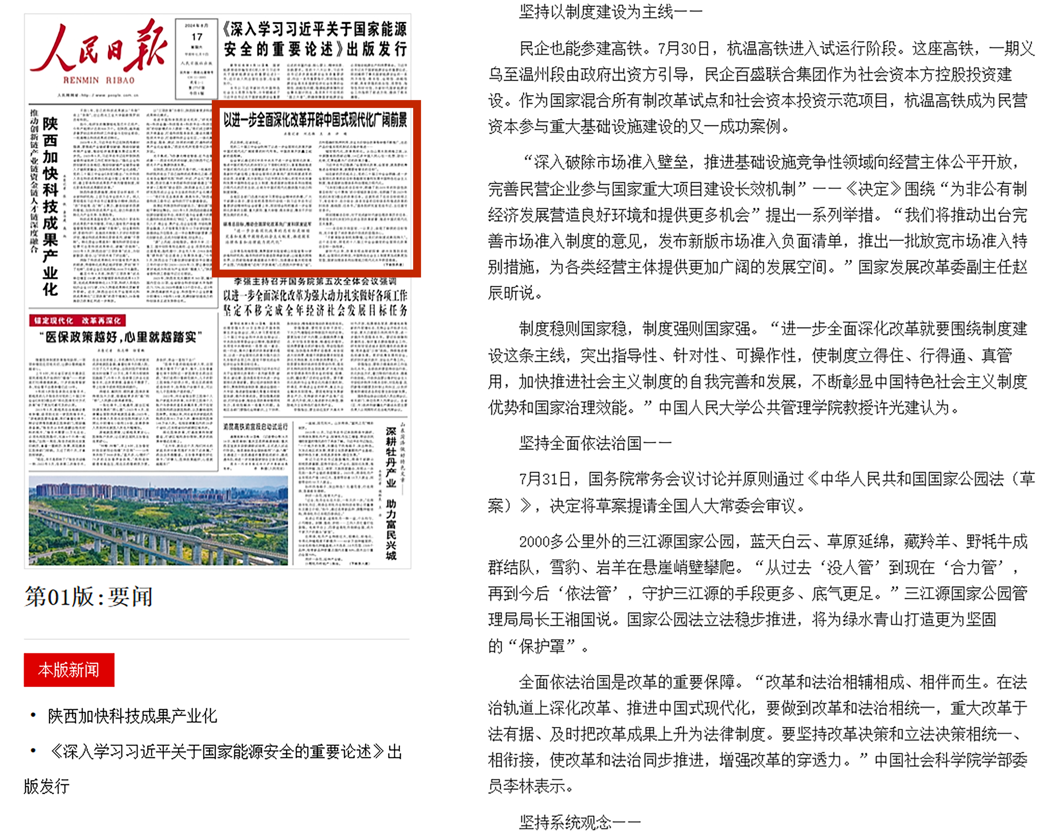 “進(jìn)一步全面深化改革,要緊緊圍繞繼續(xù)完善和發(fā)展中國(guó)特色社會(huì)主義制度、推進(jìn)國(guó)家治理體系和治理能力現(xiàn)代化的總目標(biāo),堅(jiān)持以制度建設(shè)為主線(xiàn),加強(qiáng)頂層設(shè)計(jì)、總體謀劃,破立并舉、先立后破,固根基、揚(yáng)優(yōu)勢(shì)、補(bǔ)短板、強(qiáng)弱項(xiàng),筑牢根本制度、完善基本制度、創(chuàng)新重要制度,不斷把我國(guó)制度優(yōu)勢(shì)更好轉(zhuǎn)化為國(guó)家治理效能,使中國(guó)特色社會(huì)主義制度更加鞏固、優(yōu)越性充分展現(xiàn)。”中央黨史和文獻(xiàn)研究院學(xué)術(shù)和編審委員會(huì)原主任陳理說(shuō)。