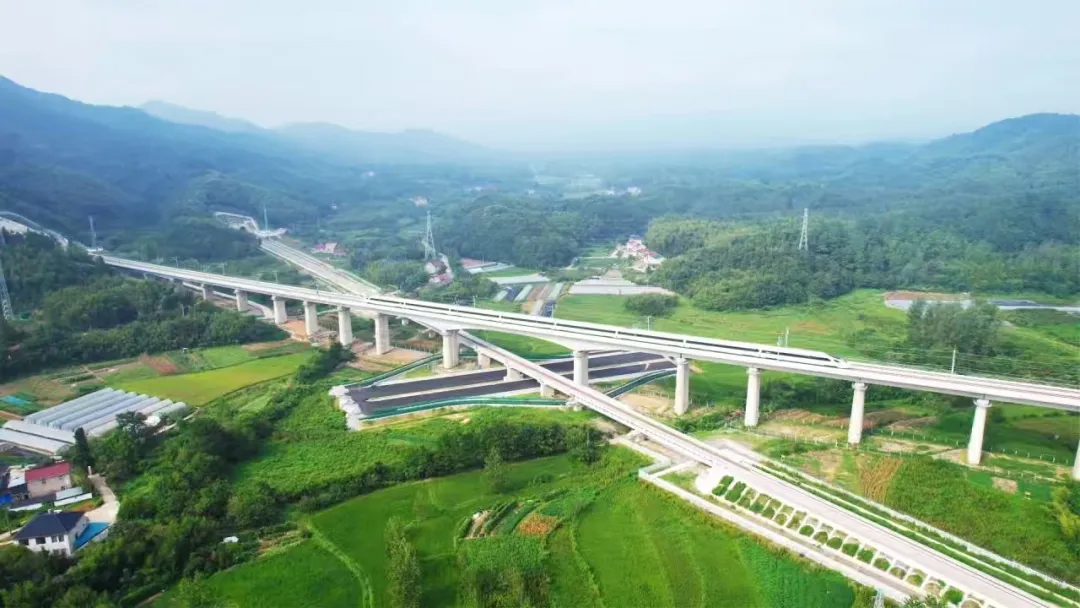 杭溫高鐵跨越浦陽江、南江、楠溪江等河流,穿越仙華山、大盤山、括蒼山等山峰,沿線山高谷深,溝壑縱橫,巖溶地質發育強烈,地形地貌復雜,施工難度較大。自2020年6月開工建設以來,各參建單位把生態優先、節約集約、綠色低碳發展理念貫穿鐵路規劃、設計、建設全過程,加大科研攻關力度,強化安全、質量和環保控制,優質高效推進工程建設,架設了楠溪江特大橋等117座橋梁,建成了木匪嶺隧道等81座隧道,確保了工程如期建成。