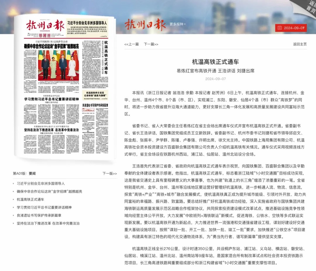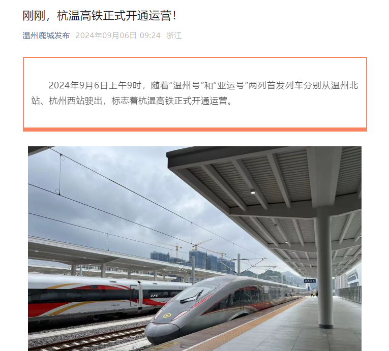 近日,多家媒體對杭溫高鐵的開通運營進行全方位報道,杭溫高鐵全網(wǎng)熱度持續(xù)走高,讓我們一起來回顧!