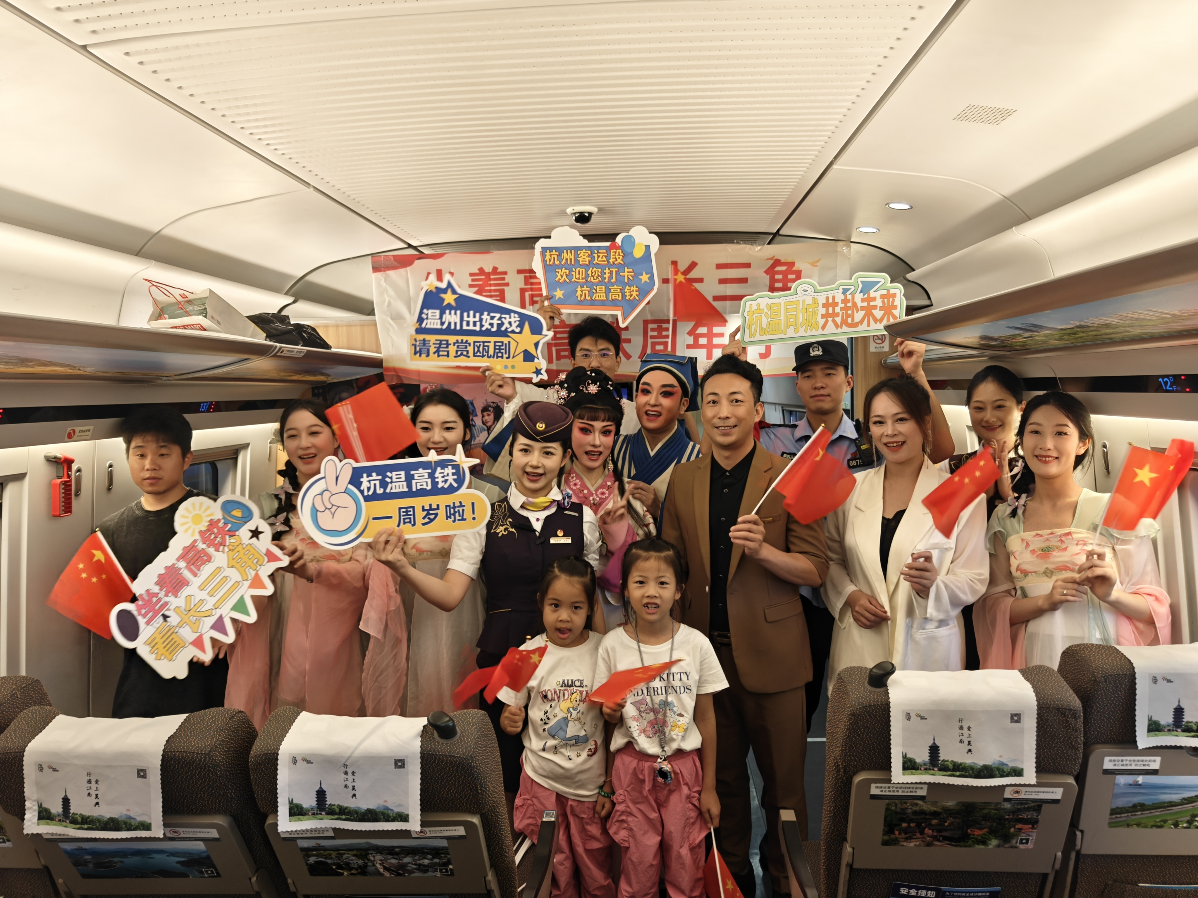 杭溫高鐵位于浙江省東南部,線路自杭州市桐廬東站引出,途經金華市、臺州市、溫州市,引入溫州北站,通過既有杭深鐵路延伸至溫州南站,正線全長276公里,設計時速350公里。全線設義烏、橫店、磐安、仙居、楠溪江、溫州北、溫州南等9座車站,于2024年9月6日正式開通運營。與運營初期單日最高開行動車組列車38列相比,今年“7·1”運行圖實施后,杭溫高鐵單日開行動車組列車最高達96列,更好滿足沿線人民群眾出行需要。